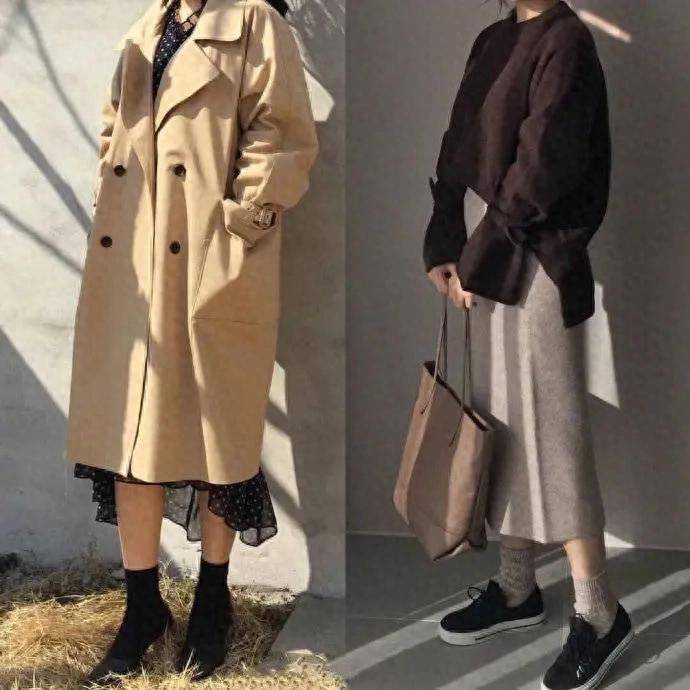 风衣也可与牛仔裤搭配。卡其色风衣搭配浅蓝色牛仔裤,是经典组合。内搭一件白色高领毛衣,保暖又时尚。脚穿一双棕色短靴,增添复古感。这套穿搭适合秋风起时,既舒适又美观。